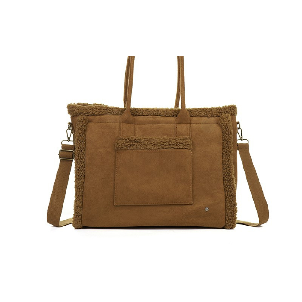 Deze ruime tas, afgewerkt met trendy teddy randjes, biedt zowel een chique uitstraling als praktische opbergruimte. Het grote hoofdvak sluit veilig af met een ritssluiting en biedt voldoende ruimte voor al je dagelijkse essentials. Binnenin vind je drie kleinere vakjes voor extra organisatie, waarvan eenn voorzien is van een ritssluiting voor je waardevolle spullen. De tas is bovendien uitgerust met een verstelbare schouderband